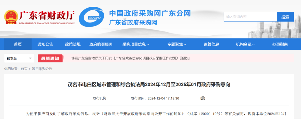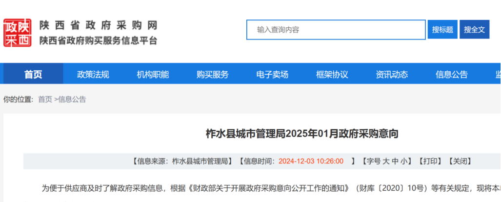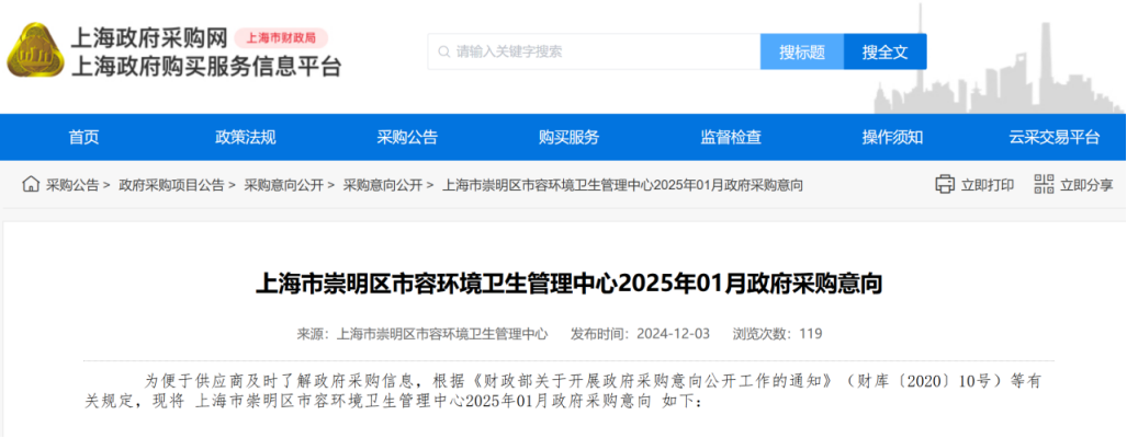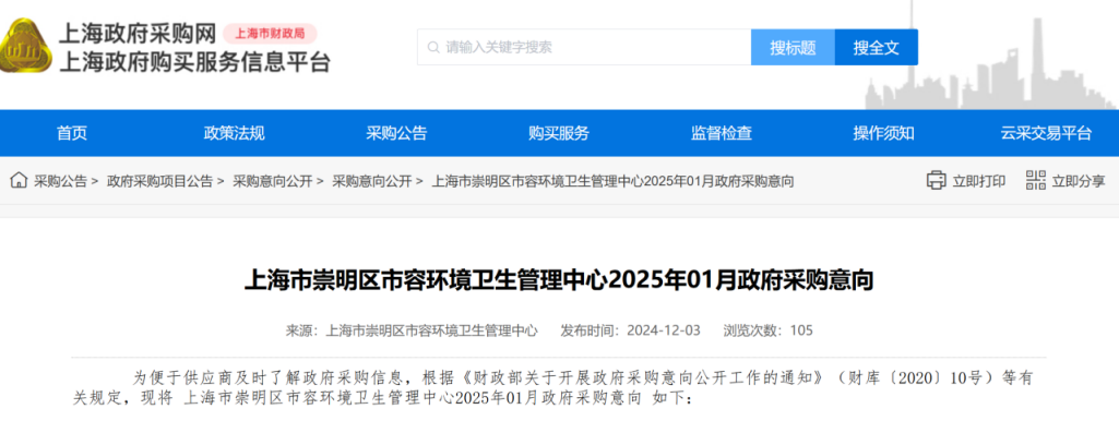 环卫在线网讯,家政服务138254040952024年12月2日至2024年12月6日,上海市、山东省、陕西省、广东省分别释放若干环卫服务项目政府采购意向,一起来看看吧。