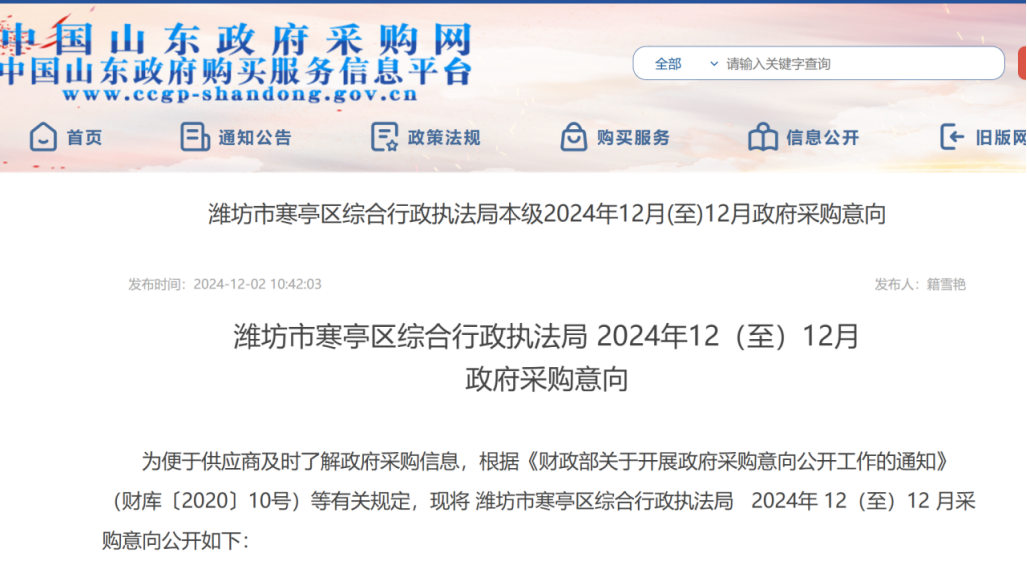 1、潍坊市寒亭区综合行政执法局寒亭区乡村环境治理服务项目