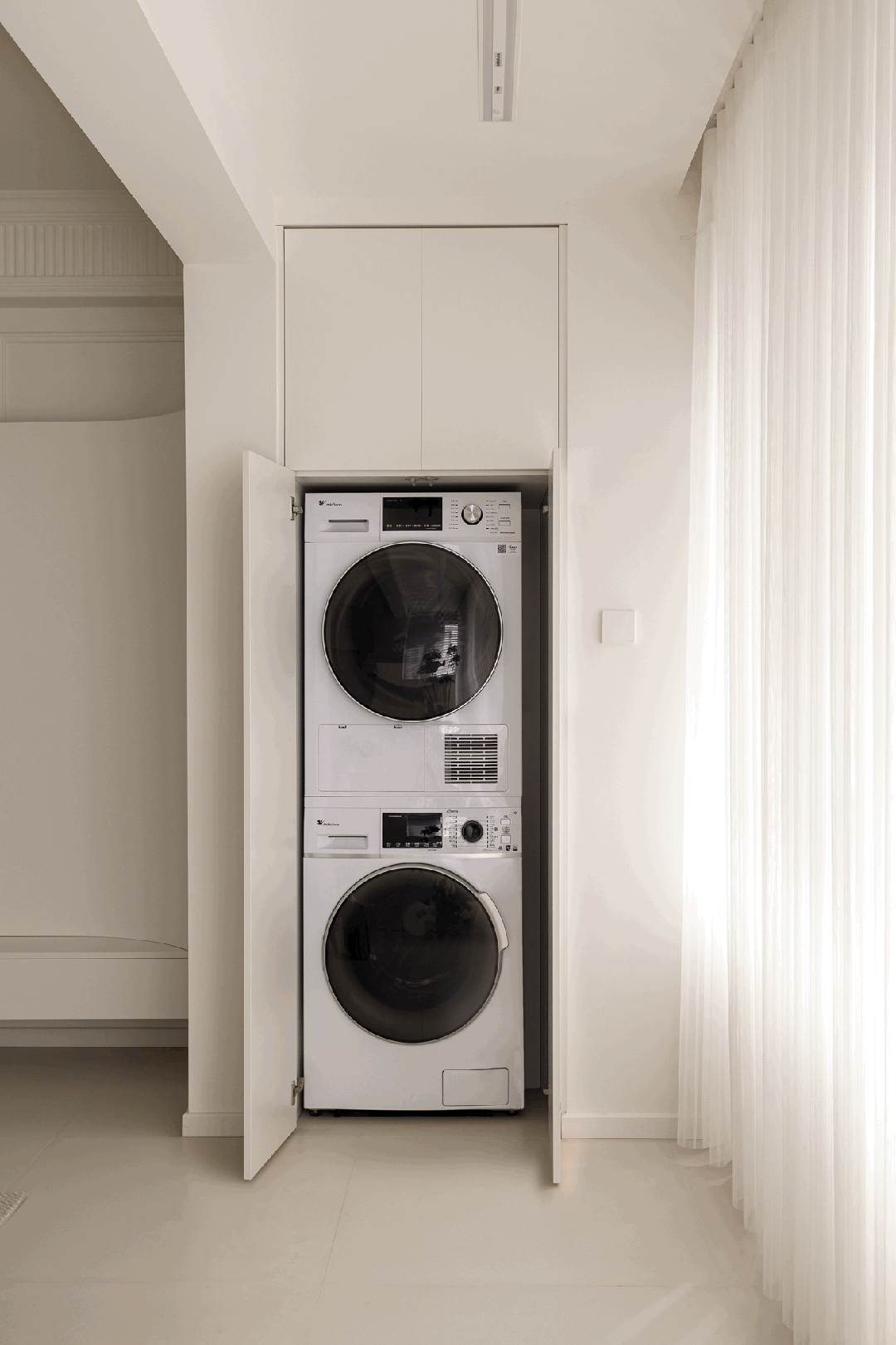 当然也可以不设计晾晒区,利用烘干机来进行烘干,同时减少衣物晾晒混乱,提高空间颜值。