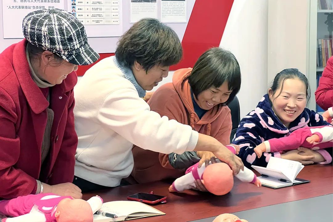 在村里,谁家有新出生的婴儿,不等对方开口,程凤兰都会热心地登门看望、答疑解惑。渐渐地,她意识到在村里普及母婴护理知识的重要性。她主动与村委会联系,说出了义务开展母婴护理培训的想法。自2023年起,她开始利用休息时间在村里举办母婴护理技能分享会。她的课堂生动且实用,不仅教授理论知识,还注重实践操作,课程内容涵盖产妇护理与保健、婴幼儿护理与保健、婴儿喂养等多个方面。