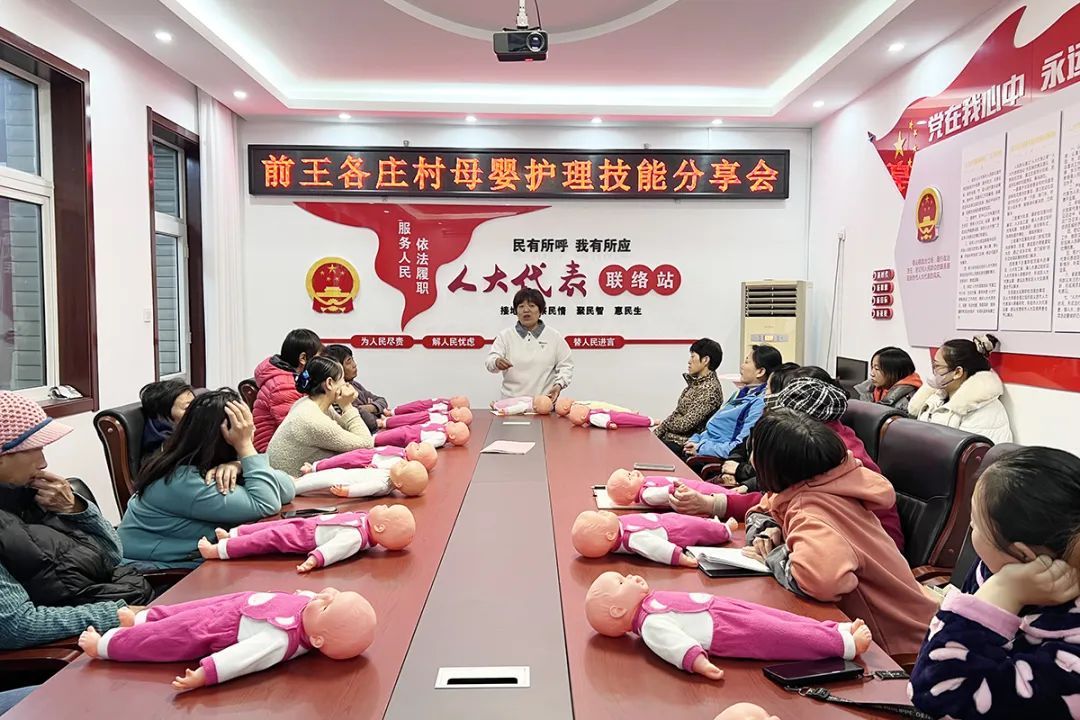 “大家为宝宝拍嗝的时候要弯下腰,拖着宝宝的臀部把宝宝往前送,宝宝的下巴要正好靠在肩上……”程凤兰一边讲解一边示范,在场的学员们聚精会神地听着,不时记下要点。村民王金艳笑着说:“今天可真来着了!以前照顾宝宝总是手忙脚乱,这下回去就不会那么紧张了。”程凤兰的分享会得到了村民们的好评。