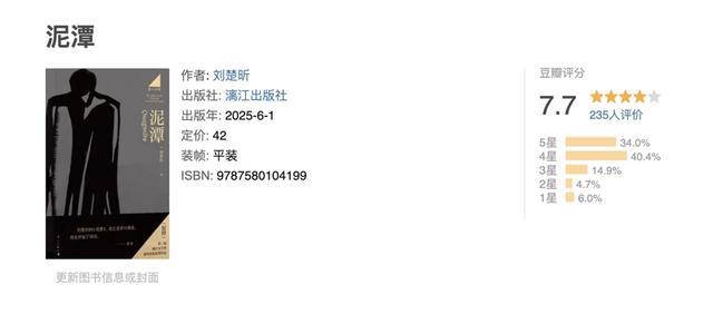 ▷刘楚昕《泥潭》首发,爆火新人首作直面市场。青年作家刘楚昕凭借长篇小说《泥潭》获得第二届漓江文学奖虚构奖,他的获奖感言火爆网络。《泥潭》预售8天便超30万册。7月4日,刘楚昕携《泥潭》在广西漓江书院未来方舟店举办了首场线下新书发布会。对于流量,他表示自己是文学路上的初学者,他也感谢自己创造的故事被大家知道。近日,已有不少读者收到预售图书,在社交平台发表了自己的阅读感想。