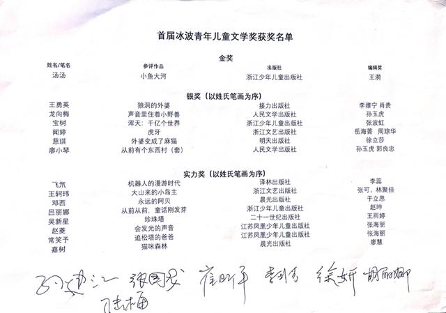 ▷首届冰波青年儿童文学奖揭晓。近日,首届冰波青年儿童文学奖终评会议于杭州纯真年代书吧落幕。此次冰波青年儿童文学奖组委会收到申报近300份,经过多轮初评、复评,最后终评得出金奖1名、银奖6名、实力奖8名。在本次评选中,年度性评选聚焦作家最新创作成果,避免“老面孔循环”,为不同发展阶段的作家提供进阶通道,同时设置了编辑奖。这不仅是一份获奖名单,更是一张中国儿童文学未来十年的潜力地图。